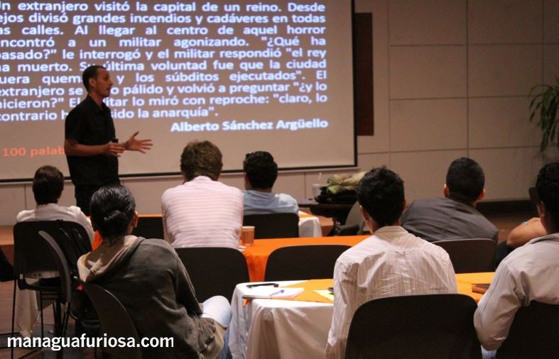 El Taller fue impartido por Alberto Sánchez, joven cuentista nicaraguense que se ha especializado en este técnica y que tuvo la generosidad de compartir sus conocimientos compilando teoría, antologías, referencias web y abriendo un grupo en Facebook para integrar a aficionados del género.