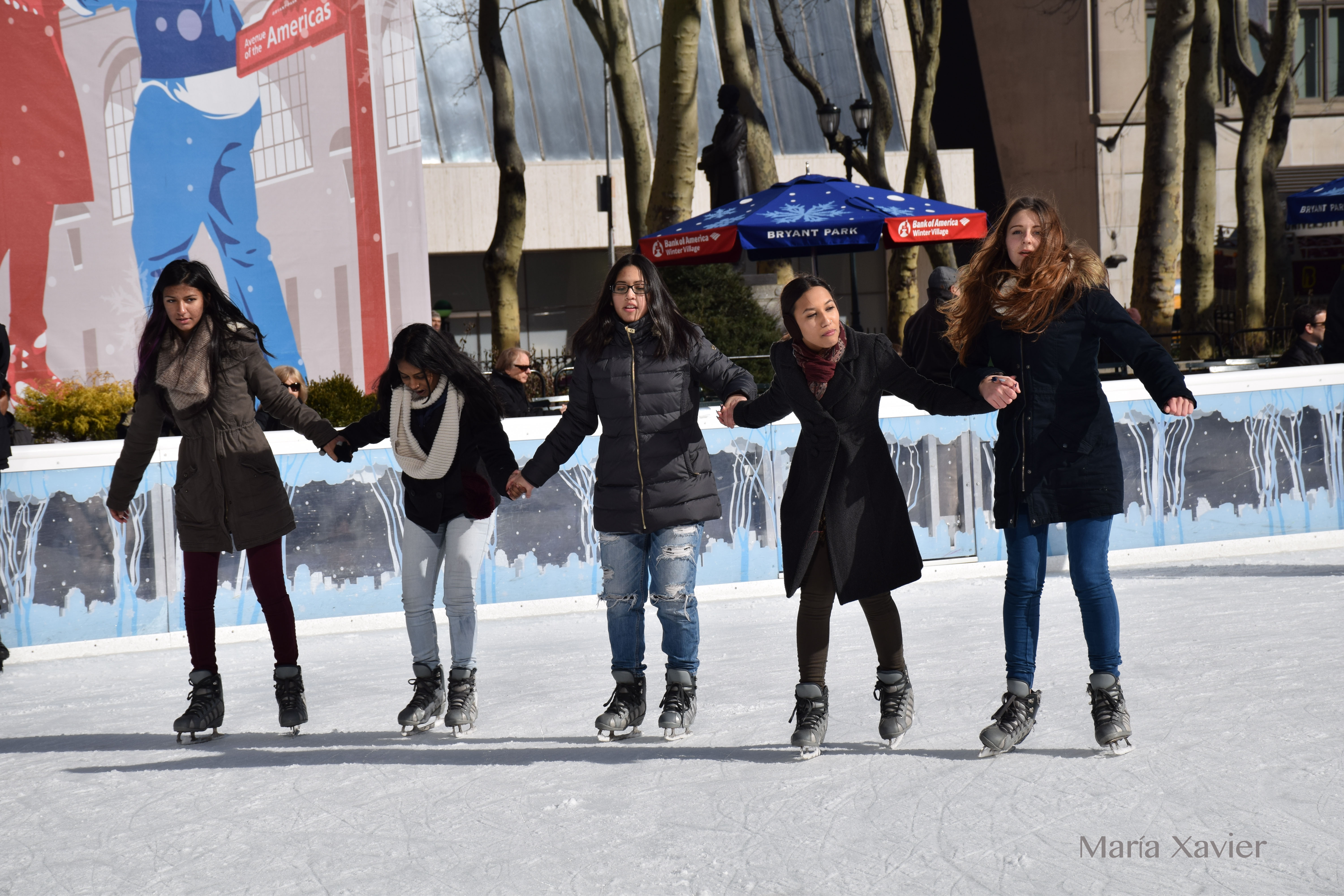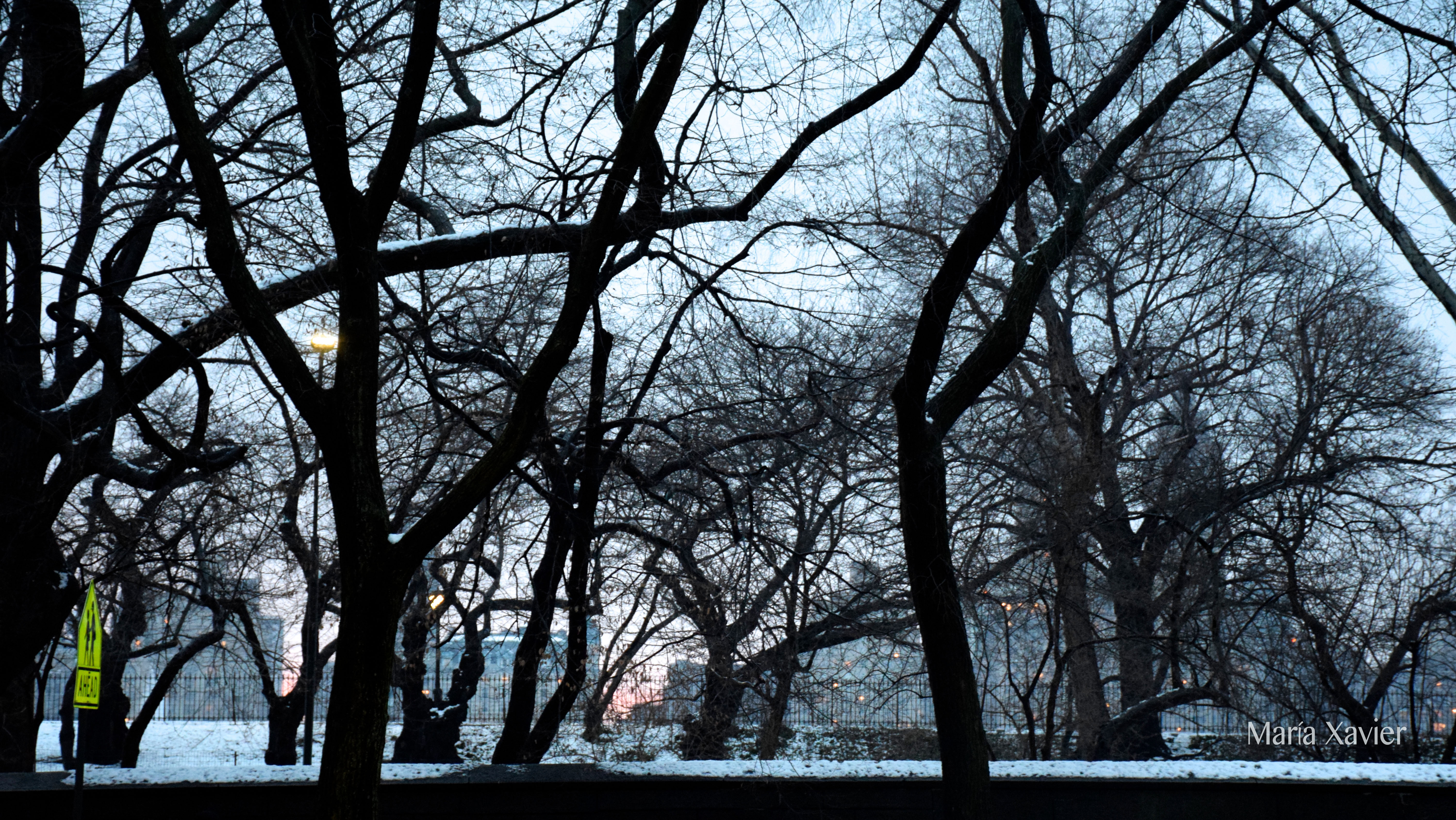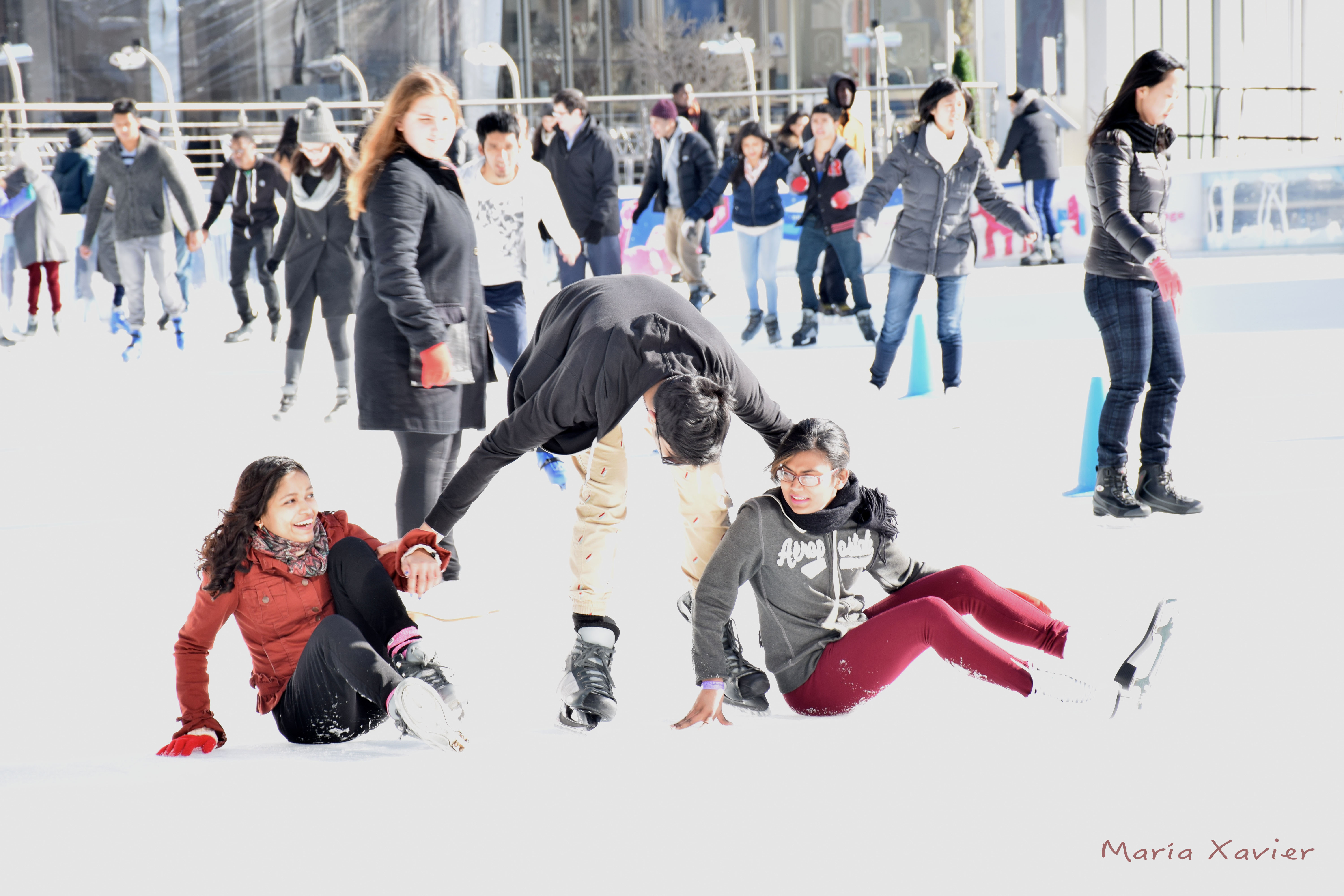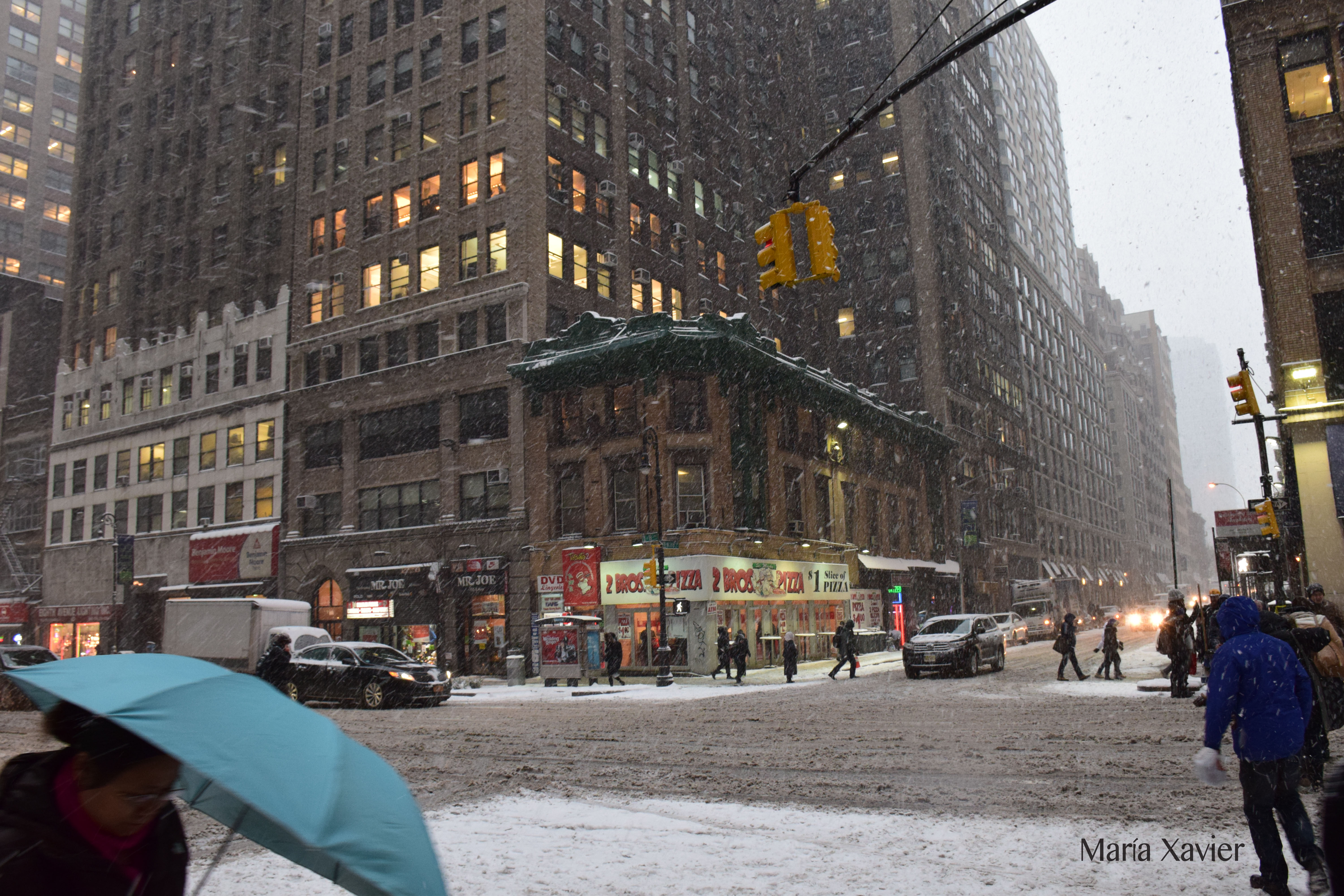 Medio día de jueves en el Brayant Park en Manhattan. Me disponía a hacer más fotos cuando sacaron a todos los patinadores porque iban a limpiar la pista.Medio día de un jueves en el Brayant Park, al lado del New York Public Library en Manhattan.Se esperaba que cayese una terrible tormenta en New York, al final fue solo una nevada, pero para mí fue fascinante! descubrí lo fotogénico que resulta el contraste de blanco con los edificios marrones y los abrigos oscuros.Esta foto producto de un accidente en la medición de luz, velocidad, asas y diafragma me resulta vibrante y se me apetece como un óleo.