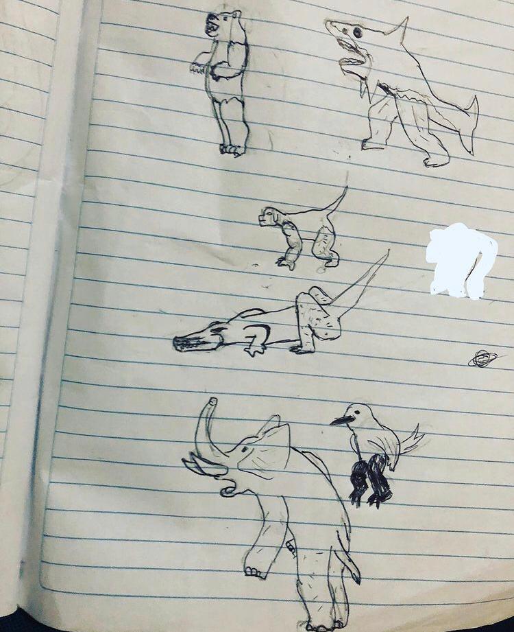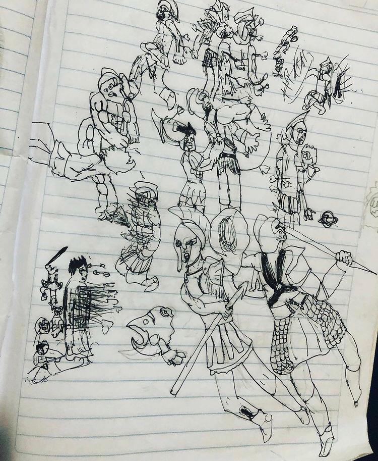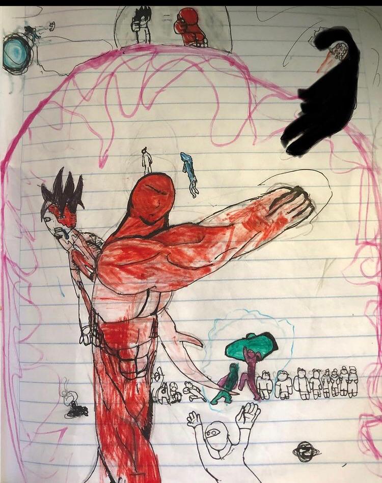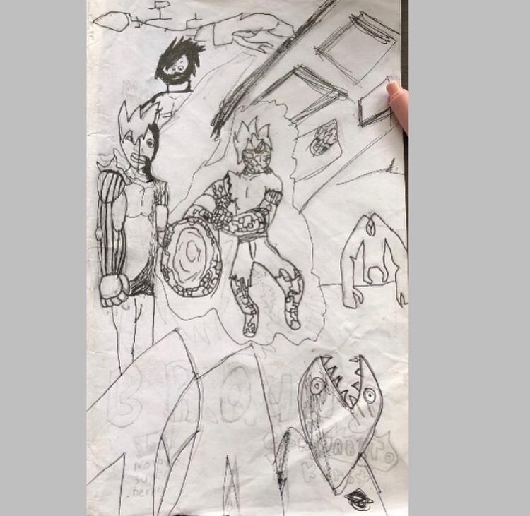 Cuando vi sus primeros dibujos, hace algunos años le dije a Vero que su hijo tenía talento, tanto por la perseverancia de sus trazos y la elocuencia narrativa. Para entonces Patrick tenía 8 años y llenaba cuadernos de personajes fortachones, de grandes músculos, ahora tiene 11 y es más exigente con su trabajo.