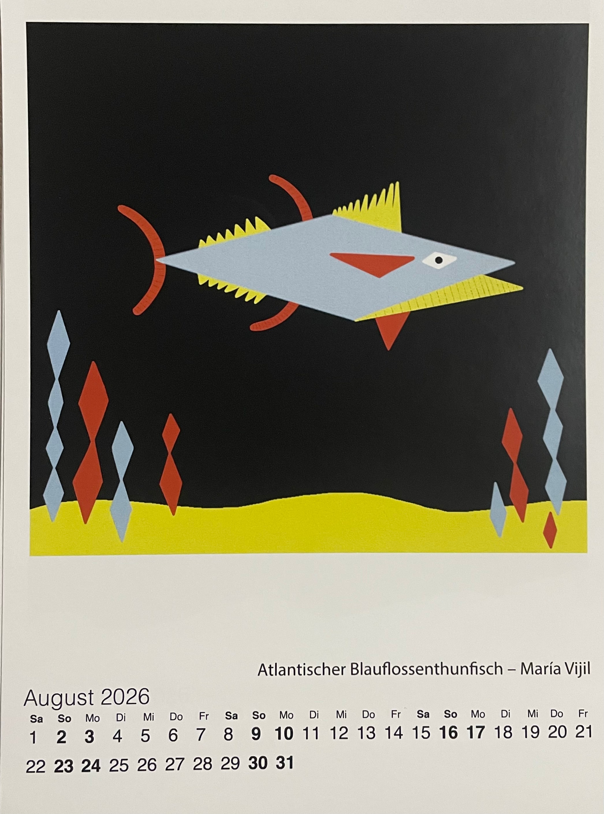Material… De Berlín apenas me traje: una taza azul que me dieron con vino caliente -glühwein en alemán- en uno de los mercados navideños, un trozo del muro, estrellas de papel con luz, decenas de fotos que no hacen justicia a lo que vivimos y vimos, y lo más preciado, el calendario de este año, en el que Belén diseñó el mes de agosto.