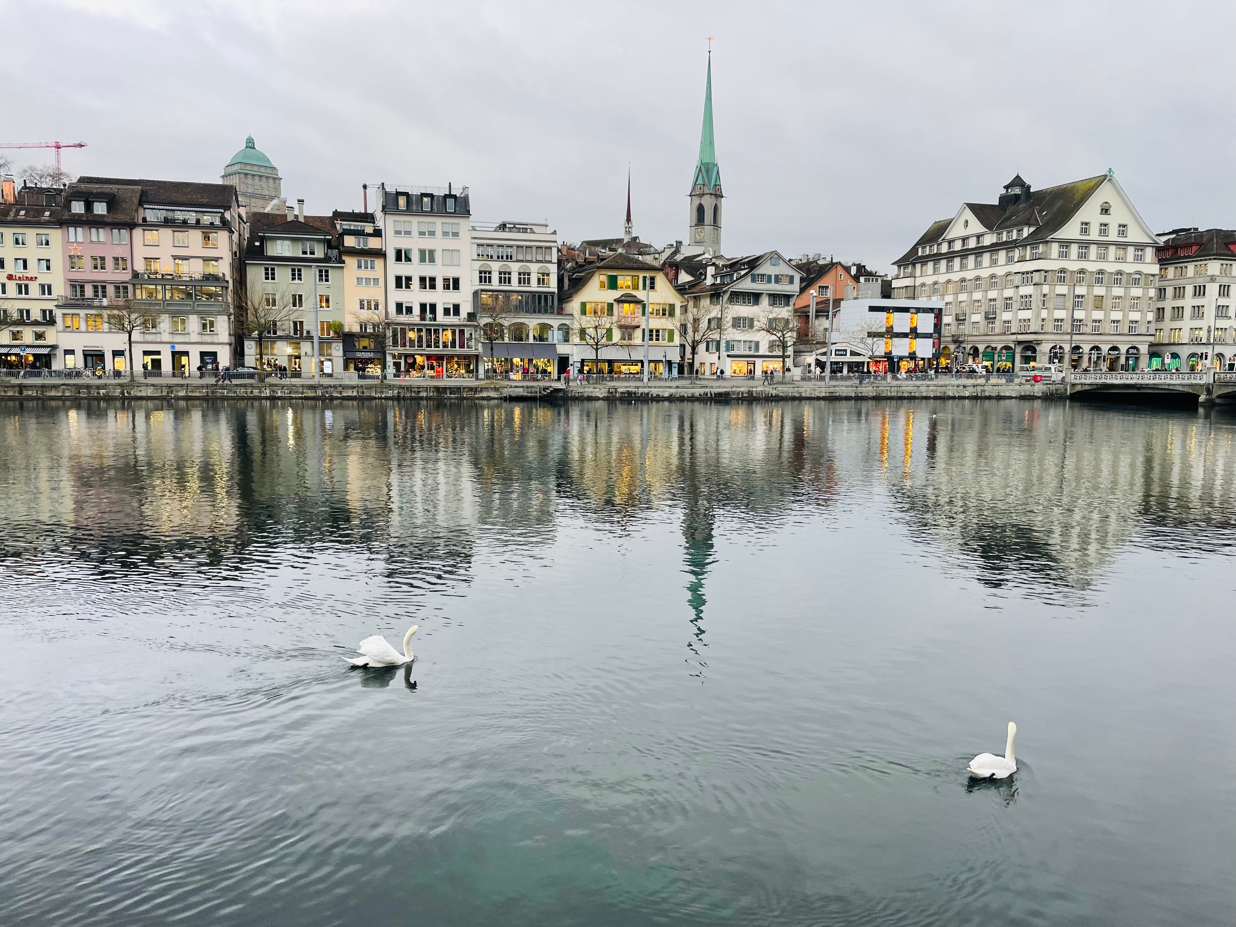 El corazón de mi hermano siempre ha estado divido entre Nicaragua y Suiza, por eso, ir a las calles con ellos también tenía sentido de pertenencia. En tan solo tres días vimos la ciudad con la alegría que ellos la ven: nos mostraron sus avenidas preferidas, los miradores, las calles iluminadas de navidad, pinos gigantes, reales, con luces de colores, oímos villancicos, fuimos a la ciudad vieja, a la universidad, al museo de los niños; montamos en buses cuyas ventanas estaban relucientes, parecían la carroza de la Bella Durmiente, olían a limpio, y al bajar, las calles olían a pan de canela recién horneado; paseamos al borde del lago de Zúrich, donde se ven elegantes cisnes nadando, teniendo de fondo las montañas que lo contienen, donde brotan casas de todos los tamaños, y por si eso fuera poco, más al fondo, la vista topa con los Alpes de picos nevados.